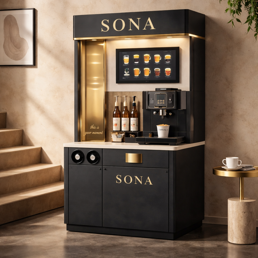 SONA Coffee verbindet moderne Technik mit erlesenen Kaffeemischungen, um in Büros, Hotels und Fitnessstudios ein komfortables und stilvolles Kaffeeerlebnis zu schaffen.